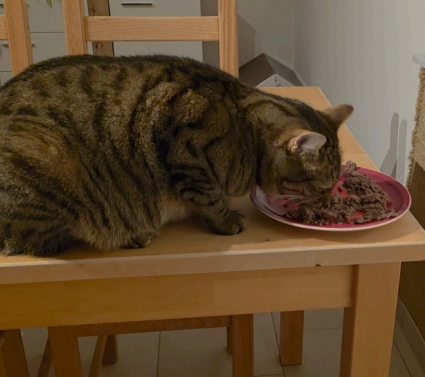Meine erste Lieferung ist da. Und mein Kater Toby war so wild darauf, dass ich nicht einmal den Teller auf seinen Futterplatz stellen durfte